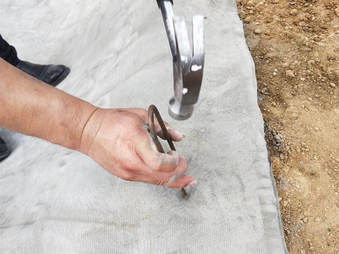4,用不銹鋼螺絲釘將兩片水泥毯固定。